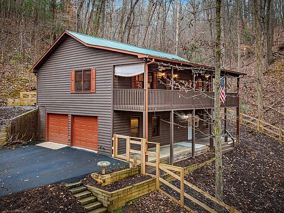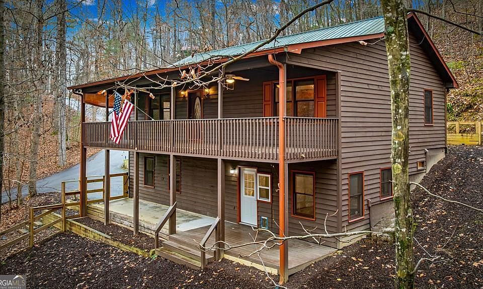 Looking for the perfect blend of Cozy Cabin Charm and Modern Convenience? This 3 BR/3 BTH CABIN on 1.4 ACRES offers a 2-CAR GARAGE, CREEK, and a NO-MAINTENANCE YARD with a BRAND NEW FENCE and MULCH and WITHIN WALKING DISTANCE OF THE COOSAWATTEE RIVER ACCES AND PARK AREA. The home features TWO DRIVEWAYS going to each level of the home, and a 2 CAR BASEMENT GARAGE. Enjoy an inviting main level with CATHEDRAL BEAMED CEILINGS, WOOD FLOORS, TONGUE-AND-GROOVE PINE WALLS & CEILINGS, and an updated kitchen with GRANITE COUNTERS, OAK CABINETS, ISLAND, and STAINLESS APPLIANCES. Enjoy the ROCK GAS-LOG FIREPLACE to enjoy that extra warmth. The living area exits out to the LARGE COVERED FRONT PORCH with ceiling fans and a porch swing overlooking the expansive and wooded yard. The primary suite includes new LVP FLOORING, WALK-IN CLOSET, ensuite bath, and FRENCH DOORS leading to a PRIVATE SCREENED PORCH WITH HOT TUB. A second bedroom and updated guest bath complete the main level. The finished basement provides a FLEXIBLE LIVING/BEDROOM area with FULL KITCHEN, FULL BATH, LAUNDRY, and ample storage-ideal for an IN-LAW OR TEEN SUITE. This area also includes a newly added large storage room that connects to the garage area. Step out onto the covered patio area which gives access to the large fenced in yard space. Additional features include 5-YEAR-OLD HVAC, NEW WATER HEATER, METAL ROOF, COVERED PATIO, and a SMALL STREAM along the property. Located near the main gate of Coosawattee and close to river access, fishing pond, and just 5 miles from downtown Ellijay, this gated community includes 2 OUTDOOR POOLS, an INDOOR OLYMPIC-SIZED HEATED POOL, FITNESS CENTER, PICKLEBALL, TENNIS, PUTT-PUTT, PLAYGROUND, GAME ROOM, and more. Discover why this property is the perfect full-time home or exceptional vacation rental!
