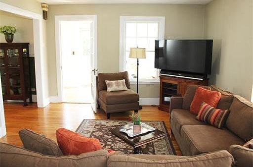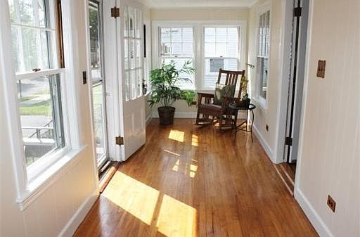 This bright and airy classic bungalow cape w/ handsome hardwood floors is steps to Greenwood School, close to 136/137 bus & Greenwood stop on Haverhill/Reading commuter rail line. Enter the large 3 season front porch that brings you to either the living or dining room. The living room is spacious & features a fireplace, closet & charming built in first floor has great flow as the living room opens to both the kitchen & has oversized opening to dining room. Dining room has plenty of space &lovely built ins. The kitchen was updated & includes a bath & door to the large young deck w/ retractable awning overlooking the nice size level fenced in back yard w/ detached garage & ample parking. Add'l 2k sf lot included in sale. Upstairs you will find 3 nice size bedrooms & large 4th room along w/ a spacious hallway w/ closets & full bath. In the walk out basement you will find ample storage space & young heating system (2008). Lots of fresh paint-in great condition ready for you to move in!