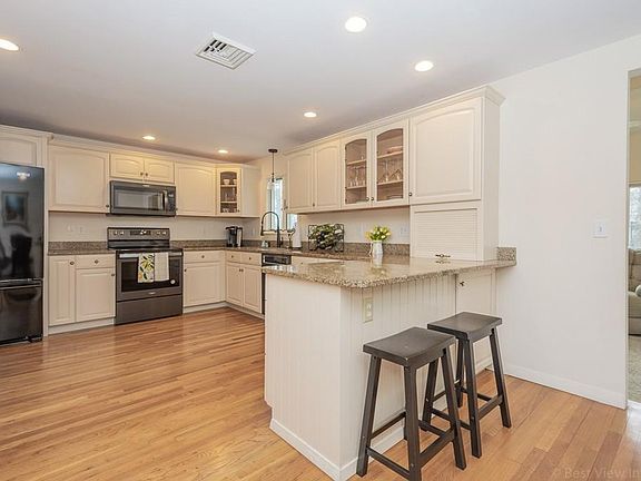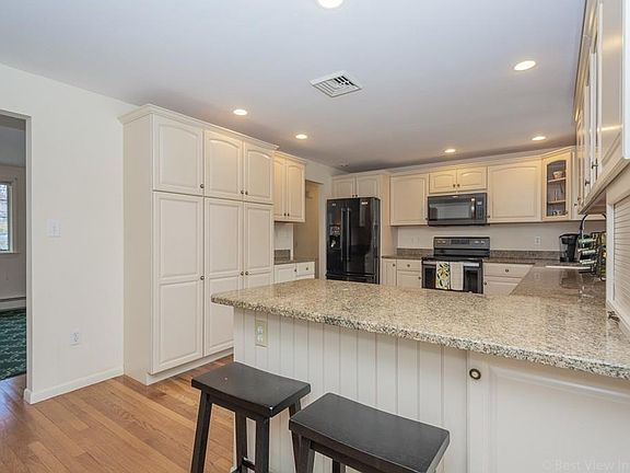 - Kit Dscrp: Flooring - Hardwood, Countertops - Stone/Granite/Solid, Breakfast Bar / Nook, Recessed Lighting