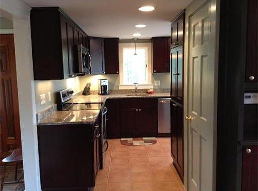 Waterfront property. Inviting updated 3BR, 2BA Colonial. New cherry kitchen with granite and stainless steel appliances. Fireplaced living room, master bedroom with balcony & sliders. Mahogany deck, new systems, versatile floor plan. 40' dock and 135' water frontage. Private dead end road maintained by the town. 2nd floor level added in 2000 w/additional updates to include new windows, siding & etc. Waterviews from every room. Enjoy boating, fishing, swimming, skating and the beautiful sunsets right in your backyard. Move in ready.