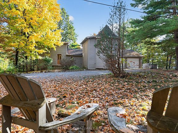 Welcome to your lakeside escape on the pristine shores of Loughborough Lake - where tranquility meets convenience. This beautifully appointed 3-bedroom, 2-bathroom home offers a thoughtful layout and stunning natural surroundings. A spacious foyer welcomes you into the home, leading to a versatile main floor den - perfect for a private office or cozy reading nook. Elegant French doors open into a sunlit living and dining area, where expansive windows frame breathtaking views of the landscape. Step out onto the upper deck to enjoy your morning coffee or unwind with evening sunsets, immersed in peaceful scenery. The galley-style kitchen is smartly laid out for functionality, complemented by a main floor laundry and mudroom with direct access to the attached two-car garage. The main level also features two bedrooms and a full bathroom, offering comfort and convenience for family or guests. Ascend to the turret and discover the primary bedroom a serene retreat with panoramic views of the lake and grounds, complete with its own private ensuite. A charming staircase leads to a third bedroom or flexible loft space, ideal for guests, a creative studio, or additional workspace. Outside, the property transforms into a private lakeside oasis. Natural stone steps guide you to the waters edge, where you'll find a dedicated dining area, a cozy firepit, and a hot tub with a stunning vista. The dock provides effortless access to 100 feet of deep, clean shoreline perfect for swimming, boating, or simply soaking in the beauty of the lake. Located just 20 minutes north of Highway 401 and minutes from Inverary, this exceptional property offers the best of both worlds: peaceful waterfront living with easy access to everyday amenities.