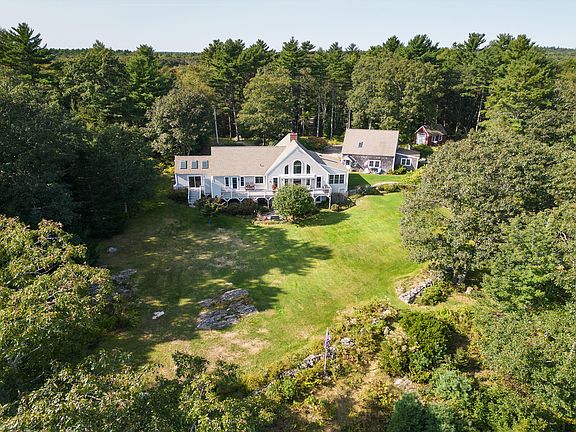 A private 7-acre waterfront escape, 18 High Head blends expansive saltwater frontage with newly renovated contemporary comfort. 2024-25 reconstruction with attention to the smallest detail creates a 4-season modern masterpiece. This fully furnished home on 320 feet of pristine deep-water frontage is complete with a charming new guest house. Enjoy the working lobster boats, harbor seals, dolphins, waterfowl, and bald eagles making it a favorite for yachts, kayakers and fisherman. The main house features exquisite design elements including 2 flights of custom floating stairs, new 30' natural stone fireplace and window wall, a new open kitchen, 3 bedrooms, 3.5 bathrooms, 12 new air-conditioning and heating zones for year-round comfort. New doors and windows throughout capture natural light and water views at every turn. The first-floor primary suite offers a private sitting room, gas fireplace, bath and bedroom, all with sweeping water views. The first level also includes a new 80' waterfront deck, dining area, kitchen island, half bath, mudroom, laundry and media room. A lower-level includes an ensuite bedroom, living room and patio all with water views. An upper-level ensuite bedroom overlooks the courtyard. The fully furnished 2-bedroom, 2.5 bath guest house has private entry leading to a lower-level living area, bedroom and half bath made private with barn doors, gas fireplace and private deck at the waterside. The second level features a chef's kitchen, kitchen island, living area, 2 full baths with laundry and an ensuite bedroom, gas fireplace, and a private waterside deck. High Head has 1000' of new paved driveways, extensive stonewalls and patios, and scenic carriage path to a new deepwater dock. Enjoy the perfect balance of seclusion and accessibility to shopping, dining, botanical gardens, golf, and hiking all nearby, situated in the heart of Midcoast Maine, minutes from Boothbay Harbor, Damariscotta, Wiscasset, 70 minutes to Portland Jetport.