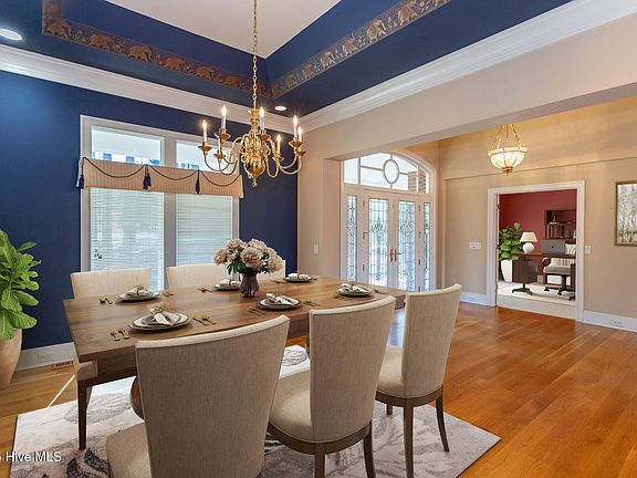 The secluded and spacious primary suite is a true retreat, featuring an incredible walk-in closet and a spa-like atmosphere. The bright, well-appointed kitchen with a large island is perfect for cooking and entertaining, while the adjoining breakfast nook provides a cozy spot to start your day. The formal dining room, accented by columns and a tray ceiling, also boasts a wet bar for added convenience and sophistication. Step outside onto the expansive deck, ideal for entertaining guests or simply relaxing and taking in the views. A large screened porch also offers fabulous golf views. This home combines style, elegance, and functionality, making it the perfect place to call home. Don't miss your chance to live in one of the most desirable locations in Pinewild Country Club!