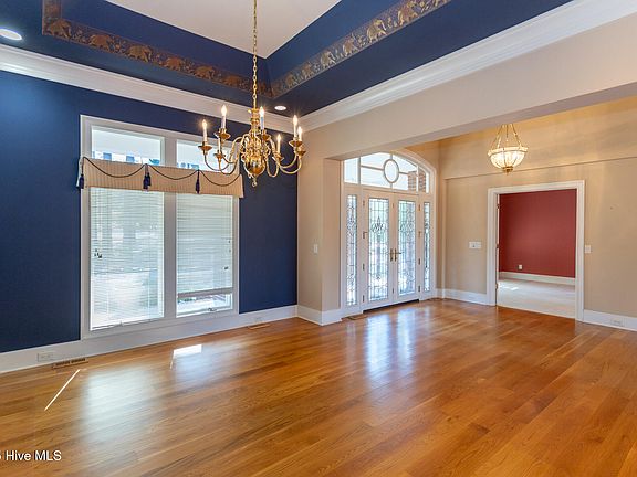 Nestled on the 4th tee of the prestigious Holly Course in the highly sought-after Pinewild Country Club, this beautiful brick home offers the perfect blend of luxury and comfort. Awarded the prestigious ''Award of Excellence'' by the Moore County Homebuilders Association, this contemporary gem boasts 3,500 square feet of meticulously designed living space, all on one level. The home features breathtaking golf and pond views, with expansive windows along the back, including an impressive arched wall of windows in the great room, offering panoramic vistas of the serene surroundings. The open and airy layout is enhanced by high ceilings, including elegant tray ceilings, and 5-inch wide hardwood floors throughout the main living areas. Custom finishes, including 8-inch baseboards and luxurious details, elevate the space.