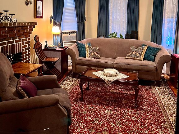 First floor of an non-owner occupied two family. All rooms have hardwood floors except kitchen and bath . Kitchen is eat in and double door frig and gas stove, dw, disposal, plenty of cabinet space, and stainless steel deep sink , tile floor and backsplash. All room tastefully painted in neutral colors. The living room(14x11) has a decorative fireplace.There is a dining room (14x11) The 2 bedrooms are equal sized (12x10) ..one has 2 double closets and the other a single. There is a bathroom between the 2 bedrooms. There is a washer/dryer hookup in the basement and storage. Nice back yard with a patio and parking for two cars (not tandem) in driveway. Year round parking on the street. Available 9/1 .No pets/smoke. 1/2 fee. Call Paula, Broker, 1/2
