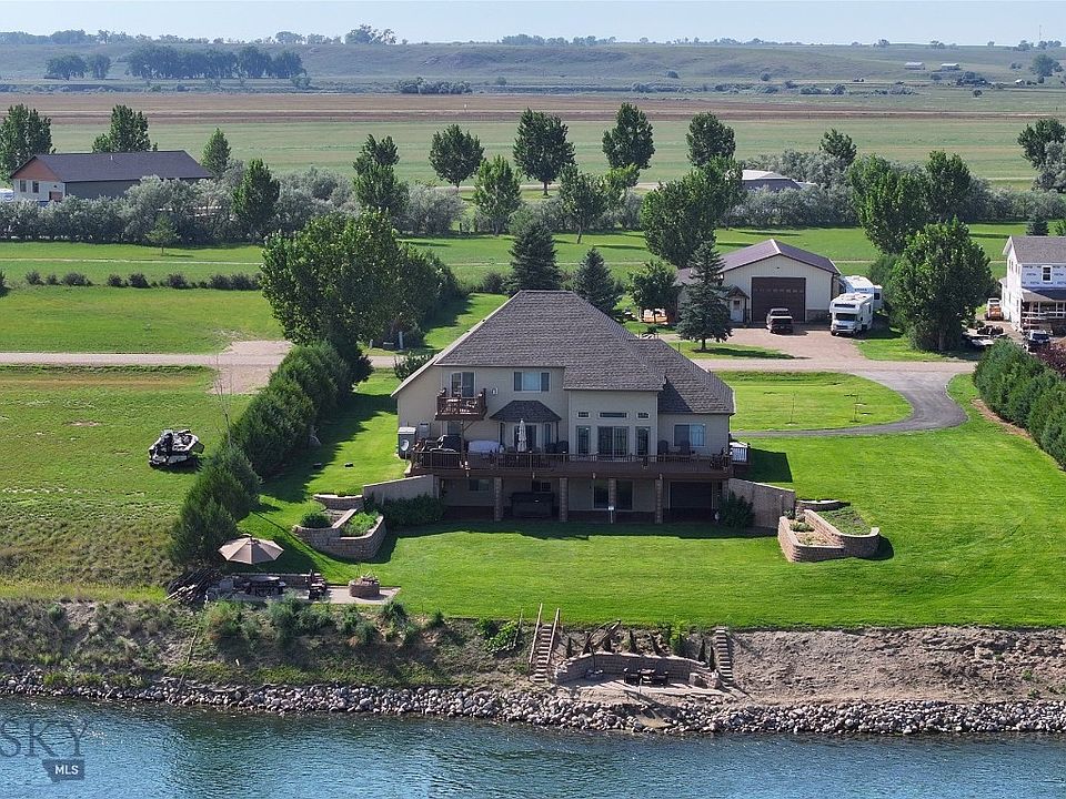 Welcome to 18 Idlewild Drive, a rare chance to own a spacious 4,218 sq ft riverfront home in the quiet Idlewild Park subdivision. With 5 bedrooms, 4.5 bathrooms, two full stories plus a partial basement, this property was designed for comfort, entertaining, and the Montana lifestyle. Features include two en suite bedrooms, multiple patios, and stunning river views. Even better — this home is being sold fully furnished, mineral rights convey, and it comes with exclusive access to a future private 9-hole golf course at neighboring Kirkland Estates through a membership offered with the purchase that is being built right now. Enjoy the bright, open layout with expansive windows overlooking the Missouri River on any level from the patios. The spacious kitchen with ample cabinetry, counters, and island seating makes it an amazing home for a weekend getaway or to move out to Northeastern Montana to enjoy the peaceful space in the quiet country. There's many additional bedrooms that offer flexibility for guests, family, or possible short term rental.