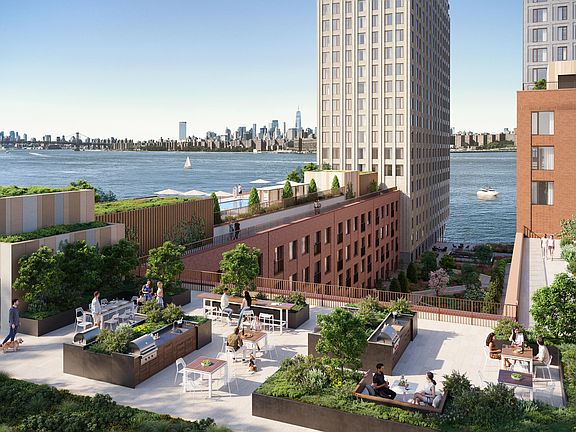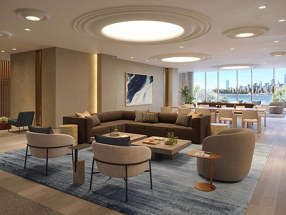 The Riverie introduces a new standard of serene waterfront living and accessibility, with direct access to Manhattan by ferry at the India Street Pier. Elegant, light-filled studio to three-bedroom residences offer exceptional, sweeping skyline views of Manhattan, Brooklyn, and the riverfront. The building pairs refined design and natural beauty with sustainable innovation, including net-zero carbon operations and New York's largest geothermal residential system.