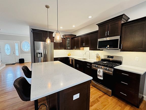 Modern Luxury Meets Effortless Living! Built in 2019 and meticulously maintained, this stunning home blends elegance, comfort, and functionality. Featuring 3 spacious bedrooms, 2.5 baths, an open-concept layout, it’s designed for both everyday living and entertaining. The chef’s kitchen showcases espresso shaker cabinets, quartz counters with full backsplash, under-cabinet lighting, and stainless steel appliances. It flows seamlessly into a bright family room with double-height ceilings, a cozy fireplace with TV hookups, and a glass slider leading to a composite deck. Upstairs, a large loft offers flexible space for a second living room, play area, or office. Two primary suites - one on the main level and one upstairs - each feature ensuite baths, ideal for guests or multi-generational living. A guest bedroom, office, and laundry complete the upper level. The basement offers ample storage. Energy-efficient design ensures comfort year-round. Start living the lifestyle you deserve today!
