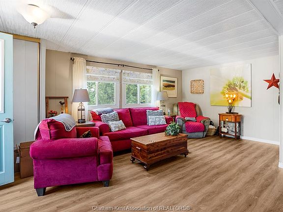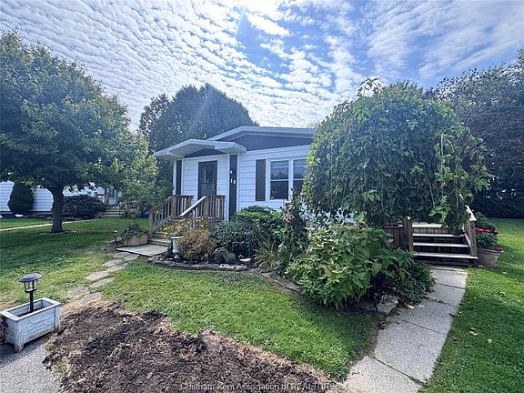Welcome to this cute, cozy, and tastefully updated modular home in St. Clair Estates on Chatham’s north side. Offering 2 bedrooms and 2 bathrooms, including a convenient 3-piece ensuite, this home is designed for comfort and easy living. Built in 1981 and measuring 24x48, the layout provides plenty of space while keeping maintenance low. Inside, you’ll find a warm and inviting atmosphere perfect for first-time buyers, downsizers, or anyone looking for a relaxed lifestyle. The property shines outdoors with a large, very private backyard complete with mature trees, a storage shed, and a double-wide paved driveway. Whether you enjoy entertaining, gardening, or simply relaxing, this yard offers the perfect retreat. Located close to shopping, restaurants, grocery stores, gas stations, and more, you’ll love the convenience of this community. Land lease fees are $485 and will increase by $50 to new owner. If you’re searching for a move-in ready home that combines charm, practicality, and a great location, this one is a must-see!