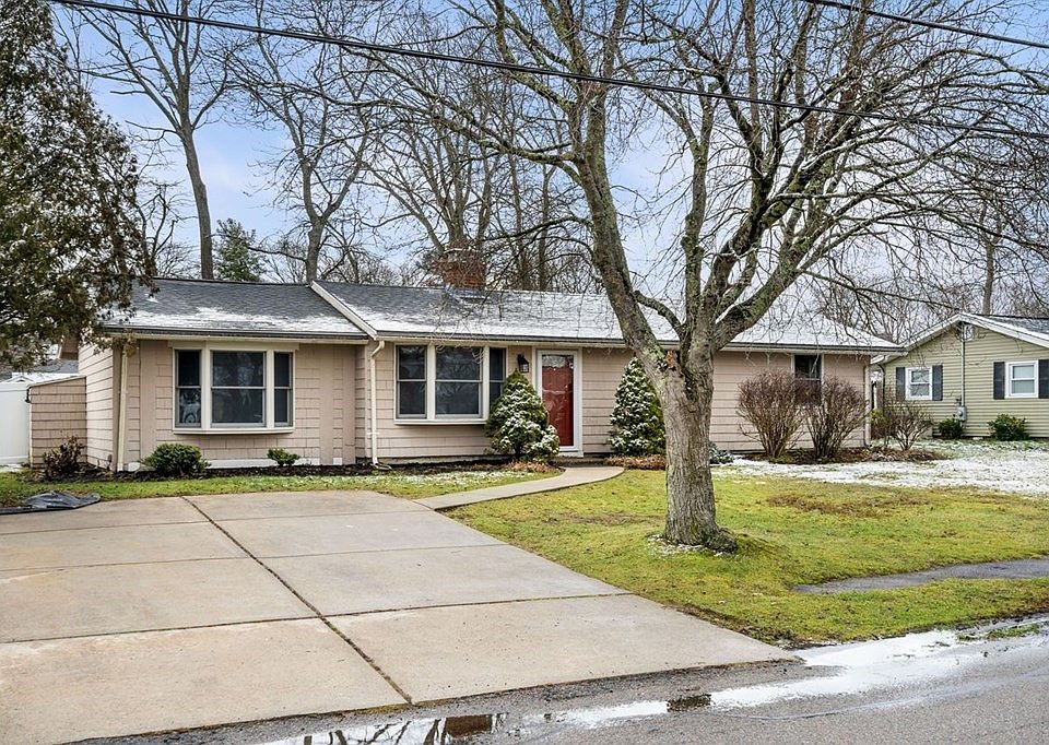 Adorable one level ranch located on a side street in a wonderful neighborhood setting. This property offers 7 rooms, 3 bedrooms, 1 bath, and an open floor plan with tons of light. The open concept flows into a fireplaced living room - dining room combination. New paint throughout, new carpets in all the bedrooms & new hot water storage tank, roof approximately 10 years. This home has an additional room to use as a playroom, family room, or even an office. There is also a storage room which you could possibly set up as a laundry-storage area. The back yard is fully fenced and ready for family barbecues. Welcome Home! Showings to begin right away.