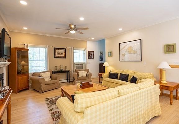 Centrally located on the beautiful island of Martha's Vineyard sits this contemporary Colonial style home on a large level lot. A fenced in green lawn with thoughtful landscaping is surrounded by an attractive stone retaining wall and multiple mature trees offering the property plenty of privacy. The front entrance opens to a grand foyer which flows into the spacious open concept living and dining area featuring high ceilings, a gas fireplace and French doors leading to the large deck and fully equipped outdoor kitchen overlooking the generous sized back yard. Also on the first floor are the kitchen with stainless steel appliances, a large island and gas stove top as well as a large bedroom, full bath and laundry room. Upstairs is the primary bedroom suite with a walk in closet and large updated bathroom with jacuzzi tub, glass shower and double sink vanity. There are two more large bedrooms upstairs and a shared full bath. Partially finished basement. Buyer could investigate permittin