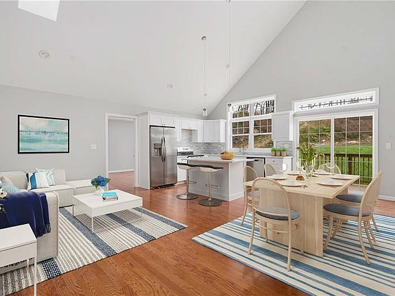 1Welcome to Orchard, a 24 acre condominium development on the Cranston town line. Here you’ll find peaceful surroundings in the woods within ten minutes of major shopping areas and four country clubs. As our name implies, we have scores of fruit trees of almost all descriptions whose produce is available to all residents. This three bedroom, new construction “chalet” style unit is located in the sought-after original section of the community. The unit has 1500 sq ft of living space, a 2-car garage and two driveway spaces, first floor master suite and two bedrooms above. Wide open living area with 18’ cathedral ceiling. Kitchen is shaker cabinets with white quartz countertops and tile backsplash. Hardwood floors throughout. Baths are ceramic tile, as is Master bedroom shower. This is one of only two chalet units available this year in the original lower section.