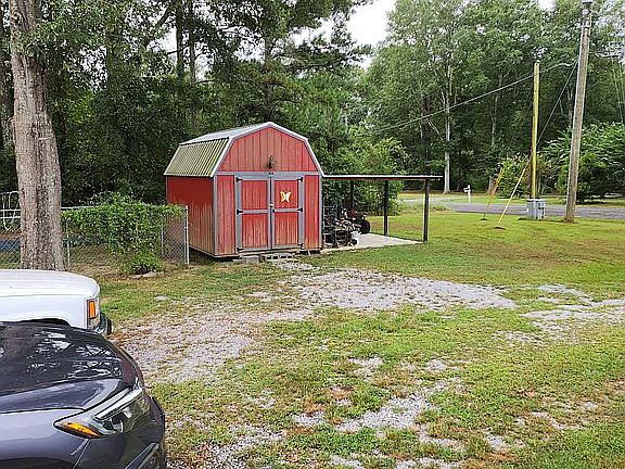 House is on 1 acre lot with nice fenched area for pets. An outside storage building with lean to. 2 concrete porches plus the wooden one attached to the mother in law suite. Gravel drive on back, with half circle drive on front. House was completely remodeled in 2021, and attached new mother in law suite in 2022. New black metal roof in 2022. Two new central unit heat pumps in 2022. Great neighbors in the county school system.