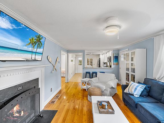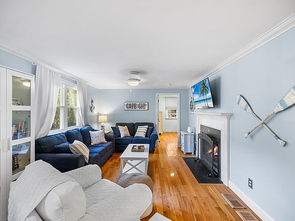 This turnkey ranch on a half acre at the end of a cul-de-sac in Mashpee has possibilities for vacation/investment home, retirement or full time living. A single-story layout for easy accessibility & main level living w/ a cozy family room featuring a fireplace & wood flooring, eat- in kitchen w/ walk in pantry & access to outdoor entertaining space. The party continues in the finished basement w/ versatile living currently used as a rec room. Plenty of defined spaces. The main bedroom has an ensuite while 2 secondary bedrooms have their own bathroom. Outside, a private backyard with a fire pit, shower, and woodland views. The property borders open land with walking trails to Peters Pond boat ramp. his well-maintained home seamlessly combines indoor comfort with outdoor recreation, blending tranquility and convenience in a desirable Cape Cod location. Known to produce vacation property income, it is near beaches, shopping, and amenities, and offers the option to be sold fully furnished.