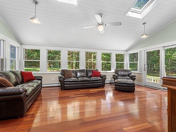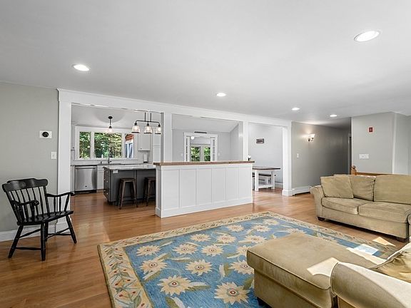 Nothing to do but move in & enjoy! Abundant with natural light and gleaming hardwood floors, this spacious home has a terrific open floor plan with Newly Renovated Kitchen at the hub of dining, family & living rooms. Also offering newer baths, extra wide hallways, 4 generous bedrooms, all on the same floor, including a primary with efficient ensuite bathroom (w/easy expansion possibilities) & over sized garage. There are plenty of places to be together and retreat inside & out. Current owners have created extra living space on both floors & added beautiful custom builtins, gas fireplace, hardwood floors, bathrooms, windows, heating system, hot water tank, roof, septic, patio with fire pit, & landscaping. Tucked in a corner lot, abutting conservation land, 18 Kimball offers tranquility & privacy in one of Wenham's most wonderful neighborhoods! In the highly rated H/W school district, and close to SJP & Shore w/ easy access to trails, parks, train & routes for heading North or to Boston!