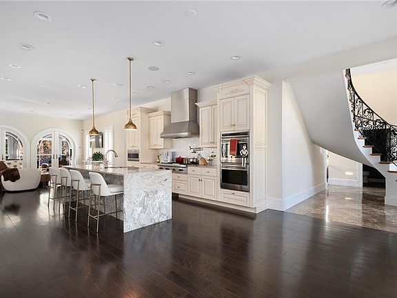 Gorgeous 3+ acres of wooded landscape surrounds this luxurious 5-bedroom, 4.5-bath Cranston home. A resort lifestyle awaits w/ a swimming pool, spacious stone patio surround, covered 9’X9’ outdoor kitchen/bar, secondary patio with fire pit, and a covered rear porch. 10’ ceilings move you through the chef’s kitchen, dining room, family room w/ walkout access to the patio, and floor-to-ceiling fireplaced living room. A circular staircase at the foyer creates a grand atmosphere. The kitchen’s large center island, wine fridge, walk-in pantry, & mudroom make it functional and stylish. A 3-car integral garage and a 1st-floor bedroom w/ private full bath complete the main floor. Upstairs, the primary suite provides a beautifully appointed dressing room and a dual-sink ensuite bath w/ corner soaking tub & large shower. 3 additional bedrooms share a full bath with a convenient laundry nearby. The finished lower level offers more spaces ideal for a guest suite, including a second full kitchen with top appliances, a dining area, media room, game room, flex room, and full bath. Close to Alpine Country Club & Cranston Country Club, you’ll be 15 minutes from shops & restaurants at Garden City and Chapel View shopping centers. Seaside outings are enjoyed at Stillhouse Cove and Pawtuxet Village. I-95 connects to Green Airport and its commuter rail station in 15 minutes. Reach Providence nightlife in 20 minutes.
