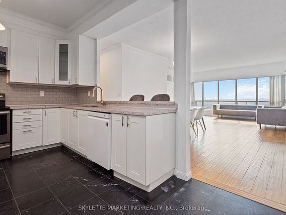 Perfect for families looking for comfort and convenience, this rare 4 bedroom + den, 2.5 bathroom condo suite offers the space of a full house with the ease of condo living. Enjoy a bright and functional layout with large principal rooms and plenty of space for everyone. The carpet-free design makes it easy to maintain, while the expansive windows provide incredible panoramic views and fill the home with natural light throughout the day. Each of the four bedrooms are generously sized, ideal for children, guests, or a home office, and the 2.5 bathrooms mean no more morning lineups. The chef-inspired wraparound kitchen offers plenty of countertop and cabinet space, as well as a breakfast bar opening to your living and dining spaces. The open-concept living and dining areas create a welcoming space for family time, entertaining, or simply relaxing together. The extensive amenities in this condo complex include: indoor pool, hot tub, sauna, squash, badminton, billiards, table tennis, gym, and 24 hour security. All utilities are included in your maintenance fee. Living near Scarborough Town Centre means having everyday convenience right at your doorstep. The mall offers over 250 shops and services, including major retailers like Walmart and IKEA, grocery options, and a wide range of restaurants to suit every taste from quick bites to family-friendly dining. A modern Cineplex theatre, seasonal community events, and a nearby public library provide year-round entertainment for all ages. Families will appreciate the abundance of nearby parks, playgrounds, and recreational facilities, while retirees will enjoy easy access to healthcare services, community programs, and the Scarborough Civic Centre just steps away. With excellent transit connections via the TTC subway and a multimodal bus terminal, plus quick access to Highway 401, getting around the city is simple and stress-free. This home is a short commute to both Centennial College and University of Toronto Scarborough.