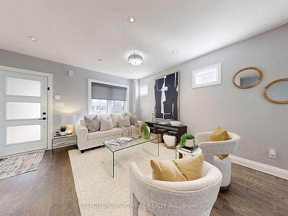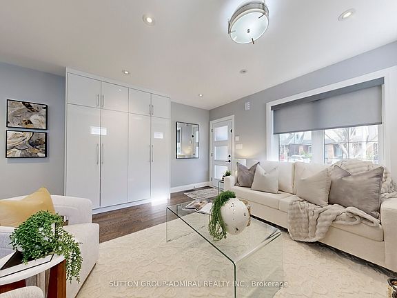 A must see! Magnificently renovated 3 bedroom modern semi-detached home with a legal front parking pad. This home offers amazing convenience in a highly desirable location. The main floor boasts a stunning open-concept kitchen with built-in stainless steel appliances, gas range, kitchen island, quartz countertops, and a generous amount of custom cabinetry. Full wall floor-to-ceiling sliding doors provide a great amount of natural light and lead to a new composite deck that overlooks a beautifully landscaped yard with a pergola-covered seating area with a functional storage shed. The impressive primary bedroom features a soaring 10-ft vaulted ceiling. Fully renovated upstairs bathroom with a floating double-sink vanity and heated floors. Underpinned basement with 8-ft ceilings features sleek modern flooring, pot lights, a built-in media center, and a luxurious bathroom showcasing an oversized glass shower, heated floors, and high-end contemporary finishes. Additional features include custom roller shades throughout, solid wood interior doors, hardwood flooring on both main and second levels. This is a home that truly has it all - modern design, thoughtful upgrades, and exceptional living spaces inside and out. Move to this great community with amazing schools. Quick walk to the vibrant Danforth Avenue, Restaurants, Shops and TTC subway transit.