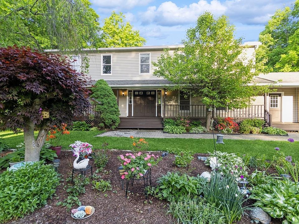 Huge and handsome Colonial boasts an expansive rocking chair front porch overlooking spectacular gardens, paver patio & walkways and delightfully lush landscape. Impress your guests with a double door entry to a grand foyer showcasing a bright, spacious floor plan with tremendous room sizes and plenty of space for entertaining or large or extended family. Beautiful Granite Chef's kitchen features all updated SS appliances, pantry, and plenty of space to prepare the perfect feast. Open family room off kitchen offers french doors to formal LR and sliding doors to back patio creating a wonderful flow. Retreat to your Primary BR ensuite at the end of a long day for a soak in your luxurious jetted tub or any of the generous bedrooms all nicely configured around an oversized second floor landing. Everything about this home is large and wonderful, including the front and backyard, both level and bordering the woods for privacy. Many updates and features include updated roof 2011, central AC up & down, new heat pump 2020, new gutters with guards 2017, and the convenience of municipal water. Wonderful location close to schools, shopping, commuter routes, and all amenities and attractions such as Mohonk Mtn House, Shawagunk Mtns, trendy Newpaltz, Walkway on the Hudson, gorgeous State Parks and historical sites, HIghland, Walkill, and Dubois Farmers Markets and so much more!