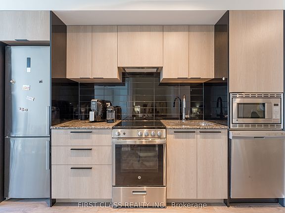 Quite streetSun-filled living rmLarge balconyModern open-concept layoutFloor-to-ceiling windowsSleek kitchenGranite countertops