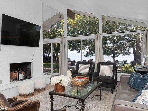 This inviting waterfront bungalow on Lake Couchiching offers the perfect blend of comfort and elegance. From the living and dining rooms, take in stunning lake views that shift beautifully with the seasons. At the heart of the home, the spacious kitchen is equipped with a high-end gas range stove and double oven, making it a dream for cooking and entertaining. A cozy sunroom with a fireplace provides a warm retreat overlooking the water, while outside, a private boathouse and dock invite endless opportunities for boating, swimming, or relaxing by the shore. Set on a prestigious street lined with mature trees, the property also boasts a spacious, private yard—ideal for family gatherings, gardening, or simply enjoying the outdoors. This home offers the perfect balance of tranquility and convenience, making it an exceptional place to enjoy life on the lake.