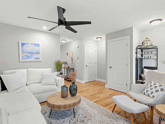 Welcome to Brookview Estates, quiet six-unit community of modern townhomes built in 2020. This bright end-unit offers abundant natural light, extra windows, and ample parking, all within a peaceful neighborhood just minutes to I-93 and downtown Derry. The open-concept main level features hardwood floors, granite countertops, stainless steel appliances, and a convenient half bath. Step outside to a large private deck overlooking a tranquil brook, perfect for grilling and relaxing. Upstairs you’ll find two spacious bedrooms, a full bath, and laundry with a brand-new washer and dryer. Additional perks include attic storage, a lower-level storage room, central A/C, natural gas heat, and direct entry from your one-car garage. Close to the Derry Rail Trail, Hood Park, shops, and restaurants. Nothing to do but move in and love where you live!