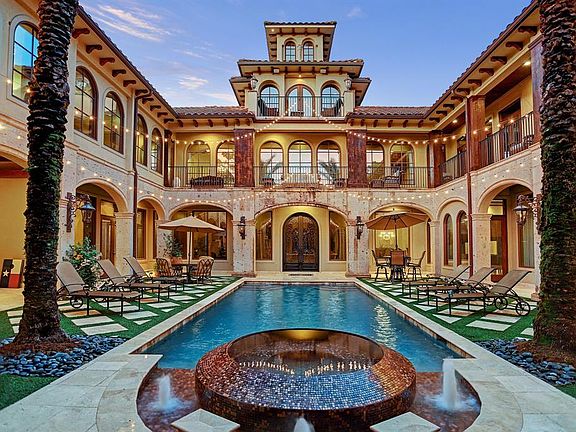 $250,000 Price Reduction! Stunning Property with Mediterranean/Italian accents. U shaped residence (Stone & Wood) opens on fantastic courtyard/pool with numerous balconies. Interiors offer multiple levels with high quality finishes and unlimited high ceilings! Master Bedroom/Bathroom Suite offers steam room, Hot Tub Waterfall with Folding Doors opening to the second courtyard with Master Waterfall Wall! The office is perfectly located between the first & second floor with library loft style! Garage can park 4 large size SUVs and is air conditioned! Carlton Woods is one of the most prestigious communities in the area with private access gates and beautiful curb appeal through the neighborhood. The photos don`t do justice to this stunning property. Proof of fund and/or Bank approval.