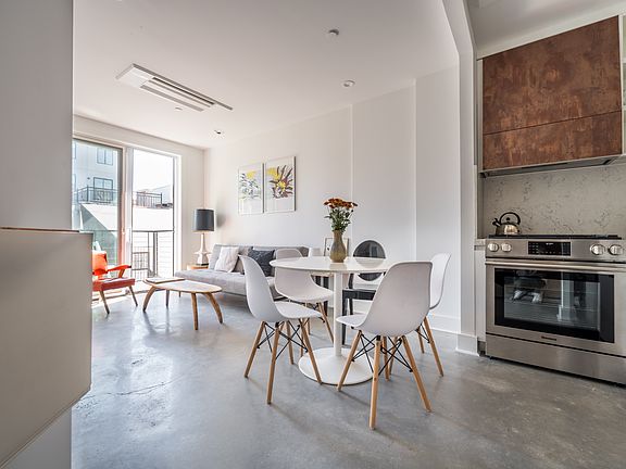 The Melrose is a new Bushwick condominium consisting of three buildings. The building has an open rooftop terrace with lovely neighborhood views. Located at the union of Bushwick and Bed-Stuy, The Melrose is just moments from a variety of restaurants, bars, cafes, and shops and around the corner from the M/J/Z subway lines and within close proximity to music venues House of Yes and Brooklyn Mirage.