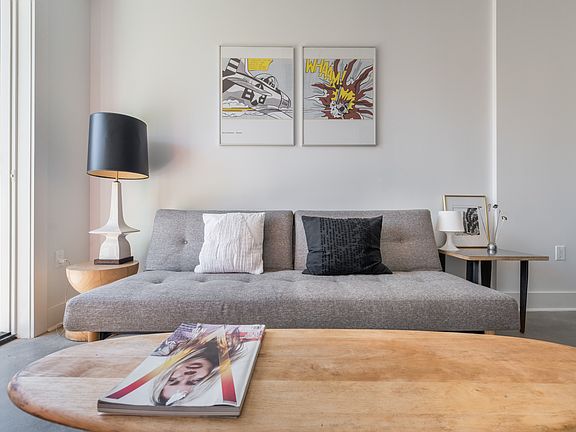 3R opens to a well distributed living room with concrete floors. It has an in unit washer/dryer and its own private balcony! The kitchen has polished Caesarstone countertops, a built-in exhaust hood with custom paneling, an antique copper faucet from Brienza, and high-end stainless-steel appliances from Fisher & Paykel and Blomberg. The bedroom has a huge walking closet, and the bathroom is adorned with Calacatta marble floors, a custom vanity with a vessel sink, and an elegant copper tile accent wall. The apartment also has a virtual intercom system.