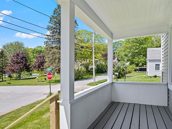 Nestled in the picturesque Topsham Heights neighborhood, this charming Cape style home has been meticulously renovated to meet the needs of its next lucky owner. Previously owned by one family since 1941, this residence has undergone a complete transformation, showcasing a blend of classic design and contemporary updates. As you step through the front door from the classic front porch, you are greeted by distinct, open spaces bathed in natural light, creating an inviting and warm atmosphere. The heart of the home, the kitchen, is a true showstopper. It boasts all new cabinetry, sleek butcher block countertops, and a convenient island/breakfast bar, perfect for casual dining and entertaining. Modern appliances complete the kitchen, ensuring a seamless cooking experience.