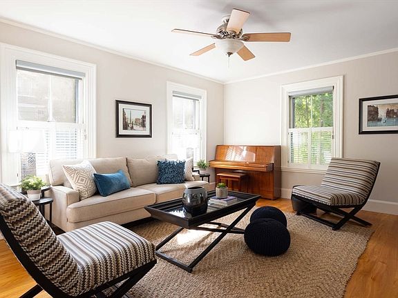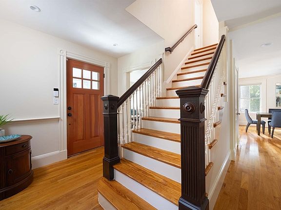 Ideally located in Newton Highlands, this lovely Victorian-era residence, with period style shingle exterior, is steps away from the Hyde Playground, the “T”, and all that Newton Highlands has to offer. It is within the popular Zervas School district. The front porch opens to an architecturally interesting first floor with high ceilings, beautiful woodwork, and abundant light. The open-concept first floor features a spacious living room and a dining room/family room area that opens to a nicely appointed updated kitchen with stainless steel appliances, stone countertops, and access to a delightful deck with views of the level yard with mature plantings. The first floor has a full, bathroom. An elegant staircase leads to the second floor which is comprised of a primary bedroom with a walk-in closet, two other bedrooms, a renovated bathroom, and a sleeping porch. The versatile third floor, with skylights, could be used as a bedroom and or office. Village shops and restaurants are nearby.