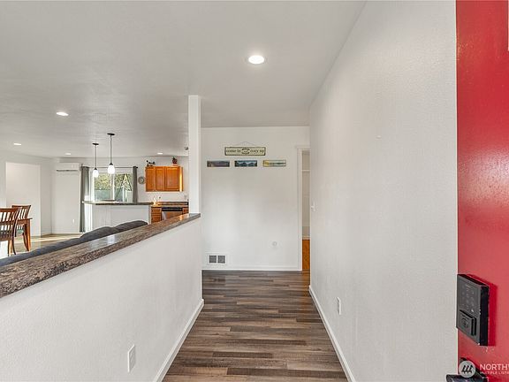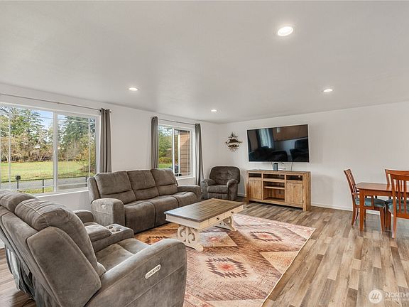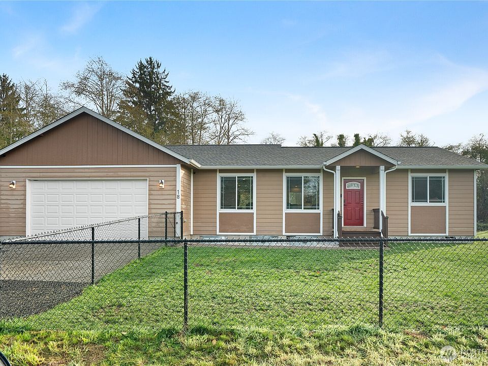 Beautiful 3 Bedroom, 2 Bath Rambler in Montesano on 1 Acre! This 1,540 sq ft home perfectly blends comfort and function with an open-concept great room and kitchen featuring tiered bar-stool seating and plenty of cabinet space. The primary suite offers a walk-in closet and full bath, thoughtfully separated from the two additional bedrooms and second full bath for privacy. The laundry room connects directly to the attached two-car garage for added convenience. A sliding door off the kitchen opens to a spacious back deck overlooking the fully fenced yard — ideal for play, pets, and entertaining.