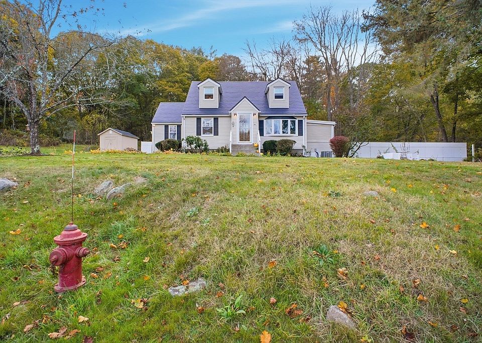 First showing at open house Sunday, 12-2 pm. This move-in-ready Sutton home offers rural tranquility with modern updates. Set on a private 1-acre lot in a town known for excellent schools, it features a fenced yard, small animal shed, and large storage shed—perfect for pets or hobby farming. Recent upgrades include vinyl siding, newer windows, a brand-new paved driveway, and a new, durable metal shingle roof. Inside, enjoy a bright living room with hardwood floors, an open kitchen and dining area with breakfast bar, and direct access to a large back porch, perfect for summer barbecues and gatherings. The main floor includes two bedrooms, a full bath, and a three-season sunroom. Upstairs, there is a spacious primary bedroom, an adjoining flex room, and a second bath. The partially finished basement adds bonus space. Within walking distance of Puckihuddle Preschool and the brand new Veterans Memorial Park and sports fields.Easy access to Route 146, I-395, and the Mass Pike.