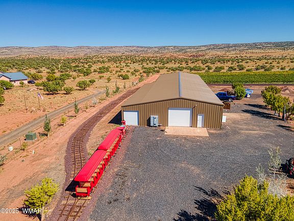 Adjacent to the residence is a massive 6,400-square-foot metal garage and hangar, fully insulated and divided into three sections, including a train hangar, storage room, and a large walk-in cooler designed for wine storage. The property even includes a fully functional train and RX crossing, with tracks that circle the vineyard for approximately one mile. An incredible feature for tours and events.