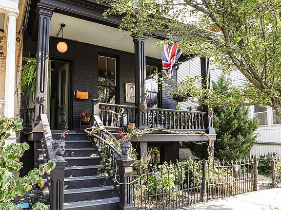 Welcome to Maison Noir, a tastefully restored Circa 1840 home just steps from Warren Street, the bustling heart of Historic Hudson. Tucked away on a quiet block, this elegant 3,600-square-foot house masterfully blends old-world historic charm and modern upgrades. With six bedrooms, an office, and three and a half bathrooms across four stories, there's plenty of room to host friends and family in comfort and style.Step through the original double front doors into a light-filled home featuring turn of the century details, including refinished historic windows, crown moldings, tin ceilings, and gleaming wood floors. Five natural gas fireplaces anchor the living spaces, while updated lighting throughout enhances the warm and inviting atmosphere, and the newly renovated designer bathrooms provide comfort and convenience. The renovated designer kitchen features custom cabinetry, double waterfall quartz countertops, and a Thermador professional range. The finished basement opens to the garden, offering additional living space with a kitchenette, bedroom, and laundry area-perfect for guests, a rental unit, or an in-law suite.The front and back porches, along with a private deck on the mansard roof, with river and mountain views, offer multiple outdoor spaces for al fresco dining or quiet mornings with coffee. The large, fully fenced-in backyard is a tranquil oasis with gardens, lush greenery, and a bluestone patio. Maison Noir is a rare find; a beautifully renovated historic property in one of Hudson's most desirable locations. Whether you're seeking a luxurious family home or an investment property-including the option to purchase fully furnished-this home offers it all. Enjoy rich history, modern updates, and unbeatable proximity to the shops, restaurants, and cultural attractions that make Hudson one of Upstate New York's premier destinations.