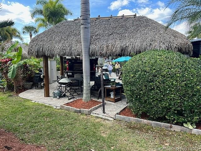 This private oasis, located in a Class A only Luxury RV resort, maybe what you have been waiting for. Located only a short walk away from the South satellite pool, golf course entrance and clubhouse makes this lot highly desirable . A cozy tiki, situated on the back of the lot, is decorated with comfortable furnishings and overlooks a green space. The mature tropical landscaping and raised planter beds that surrounds this 2516 sf lot, provides privacy in a beautiful natural way. The entire site is hardscaped in a 3 piece modular paver system that adds so much to the already inviting curb appeal. This site is perfect for entertaining friends or enjoying a relaxing night outside in the tiki. On cooler nights you can lower the electric screen to help keep the warmth inside the tiki and on warmer days simply turn on the ceiling fan.
