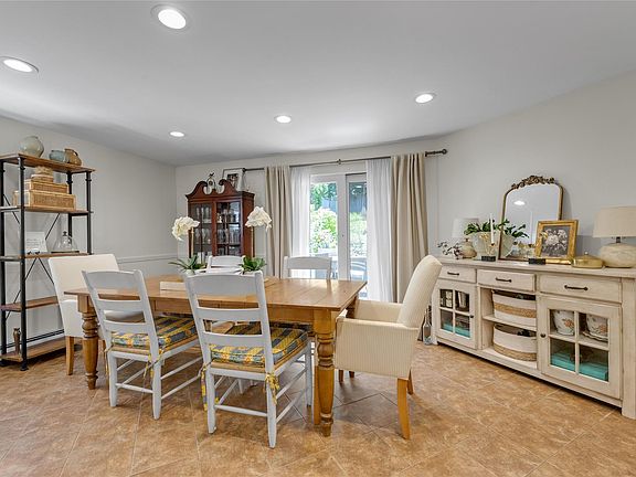 The bright and welcoming first floor features a spacious living room and an updated kitchen with plenty of room to cook and entertain. A versatile formal dining room—with sliding glass doors that open to a patio and a beautifully landscaped private yard reminiscent of an English garden—can also be used as a den.