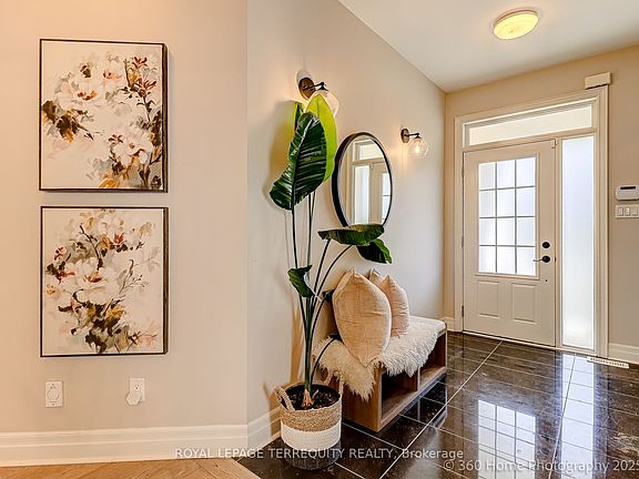A truly sparkling former model home designed for elevated urban living* Heres a perfect opportunity to own a bright, south-facing & spacious 4 bdrm, 3 baths in prestigious & convenient Northglen community* Enjoy a functional layout from the large welcoming foyer to the airy formal dining rm & a family room that features a double-sided fireplace & 9-ft coffered ceiling & engineered wood floor* Redefining modern luxury living the chefs kitchen has new quartz countertop, oversized centre island, expansive pantry & breakfast area w/ walk-out to patio & yard w/ custom inground sprinklers* Your Primary bdrm retreat boasts a walk-in closet & a 5-pc spa-inspired bath* Good-sized bedrooms w/ double closets feature wainscoting & meticulous craftsmanship* Laundry rm w/ window on 2nd flr spells convenience* Separate entrance to the bsmt waiting for your personal touch which has a huge cold storage (cantina)* Interior access to your two-car garage with epoxy flooring* Minutes to public & Catholic schools, easy access to 407 & 401* See it for yourself Dont miss out!