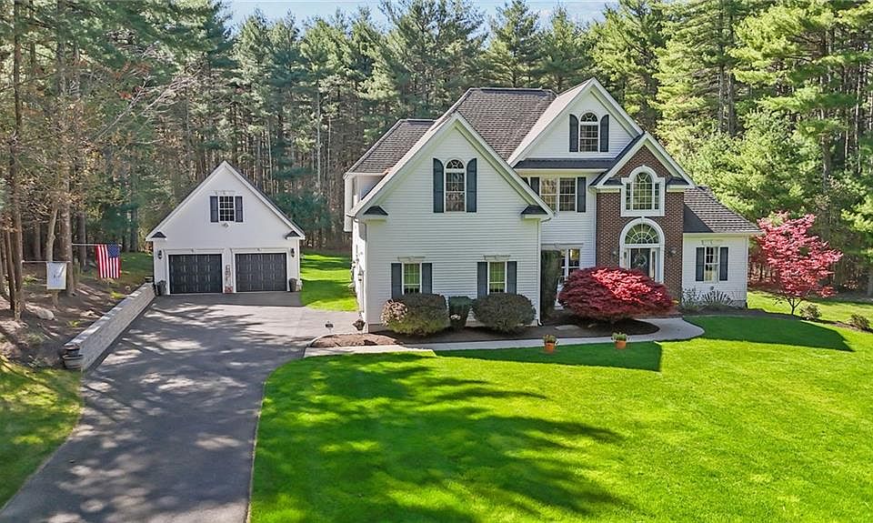 This meticulously cared for, custom-built home in the highly desirable Hawk Crest Estates presents a unique ownership opportunity. Situated within a private enclave, this European colonial offers stunning views of Johnsons Pond. The residence features the convenience of a four-car garage and boasts four spacious bedrooms, including a sought-after first-floor primary suite complete with a double vanity and walk-in closet. An additional first-floor bedroom offers flexibility as a guest room or in-law suite. With three full bathrooms, a media room, and a versatile space perfect for a gym or home office, this property provides abundant living space. The expansive kitchen is appointed with granite countertops and includes a comfortable bar area and a vaulted dinette, ideal for everyday dining. Adjacent to the kitchen, a large, open-concept hardwood dining room is bathed in natural light thanks to impressive floor-to-ceiling windows, creating an inviting atmosphere. The double-vaulted hardwood family room overlooks the pristine backyard, a true highlight featuring a professionally installed putting green for golf enthusiasts. The property also backs onto a wooded "open space" maintained by the HOA, ensuring lush landscaping and privacy throughout the neighborhood. Enjoy your morning coffee or a relaxing read on the deck, surrounded by nature's tranquility. Conveniently located just minutes from I-95 This is an exceptional property in an unbeatable location! Must-see!