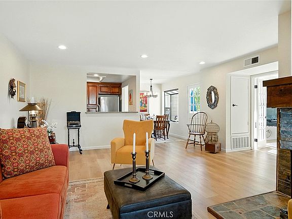 Welcome to 18 Oak Spring Lane, a beautifully upgraded 2-bedroom, 1-bathroom condo in the highly desirable Heather Ridge community of Aliso Viejo. This top floor light-filled home blends modern updates with everyday comfort, starting with newer luxury vinyl plank flooring, recessed lighting, and fresh interior paint. The living area features a cozy fireplace and flows seamlessly into a private patio, freshly painted along with the front porch- ideal for relaxing or entertaining. The kitchen is well-appointed with granite countertops, a stainless steel appliance suite, newer dishwasher, garbage disposal, updated plumbing, stainless steel faucets, and plenty of space to cook and gather. Central heating and air conditioning keep the home comfortable year-round, with the HVAC and water heater both recently replaced for peace of mind. A convenient in-unit laundry area includes a newer washer and dryer.