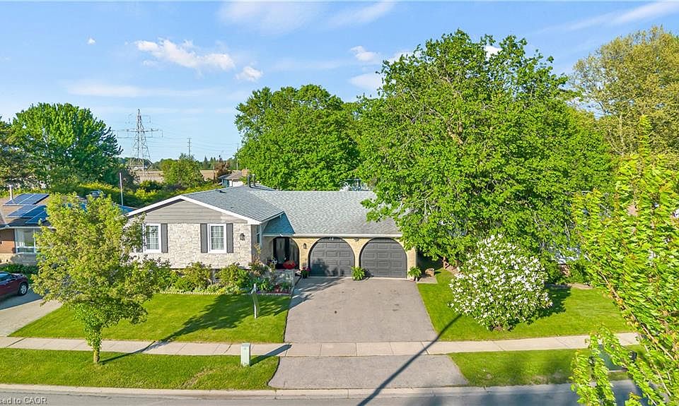This charming, well-cared-for custom bungalow sits on a beautifully landscaped, oversized lot in a prime Brantford location. With two spacious living rooms and plenty of room for every member of the family, it offers comfort, space, and versatility. Whether you're hosting family gatherings or entertaining friends, this home is perfect for creating lasting memories. Just minutes from schools, major shopping centres and with quick access to Hwy 403 and Hwy 24, it's a rare blend of convenience and character. A long list of updates provides peace of mind, including: roof gutters (2025), entrance door (2017), veneer stone (2024), kitchen countertop (2019), remodelled kitchen cabinets (2025), upper-level windows (2019), lower-level windows (2017), dishwasher (2025), stone oven with air fry feature (2021), range hood (2021) and fridge (2025).