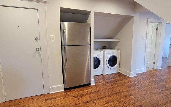 Fresh and nicely updated 2 BR apartment on 3rd floor of a home nestled on a cozy street close to GSP, nearby train/bus, parks (Splash Park at Watsessing) and Bloomfield Center (shops, restaurants and and special events throughout the year). Boasting beautiful hardwood floors, stainless steel appliances and in-unit washer/dryer for your convenience, the exposed brick column in the open floor plan living/dining room are a show stopper. The location provides all the access needed to quickly get into NYC while allowing the benefits of suburban living. It's completely move-in ready, just bring your decorating ideas. Tenant will have one assigned off-street parking space. No access to backyard since Parks are close by. Utilities are split according to household. Pet friendly.
