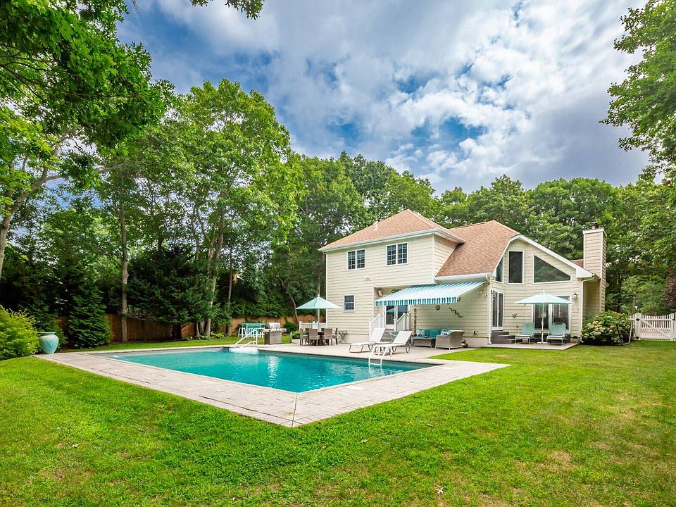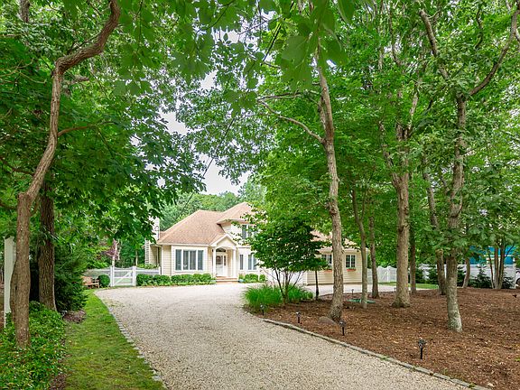 Stunning, post modern home, in pristine condition with modern, artsy vibes located mere steps from a private bay beach along Gardiner's Bay. The gracious interior features high ceilings, an open floor plan and is flooded with natural light throughout. A generous entry foyer opens up to vaulted ceilings, living room, and dining room and seamlessly flows to the great room and beautiful, recently updated kitchen with a walk-in pantry. The primary bedroom is located on the second level and is equipped with a new ensuite bathroom and a large walk-in closet. Two additional guest bedrooms and a gorgeous new bathroom complete the second level. The lower level bedroom area has private access to the outdoors and enjoys well-appointed living space, a full bathroom, and separate and large closet areas. An oversized two-car garage flows into a convenient mud room and full bathroom. Beautiful hardwood floors throughout, 2 zone heating and A/C, security system and irrigation. A magnificent 40' by 20' heated swimming pool is surrounded by a handsome stone patio, multiple seating areas, and a new retractable awning. This private paradise is surrounded by mature trees and flowering shrubs and exudes relaxed elegance. The entire ensemble is located in the highly sought-after community of Lion Head with its own tranquil beach, 40-boat slip marina, and kayak storage area. Explore the natural beauty of East Hampton along the pristine, unspoiled coastline of endless sand, sparkling water, and extraordinary sunsets. Approx. 400 sq. ft. of additional living space is available for expansion off the primary bedroom. Architectural drawings are available.
