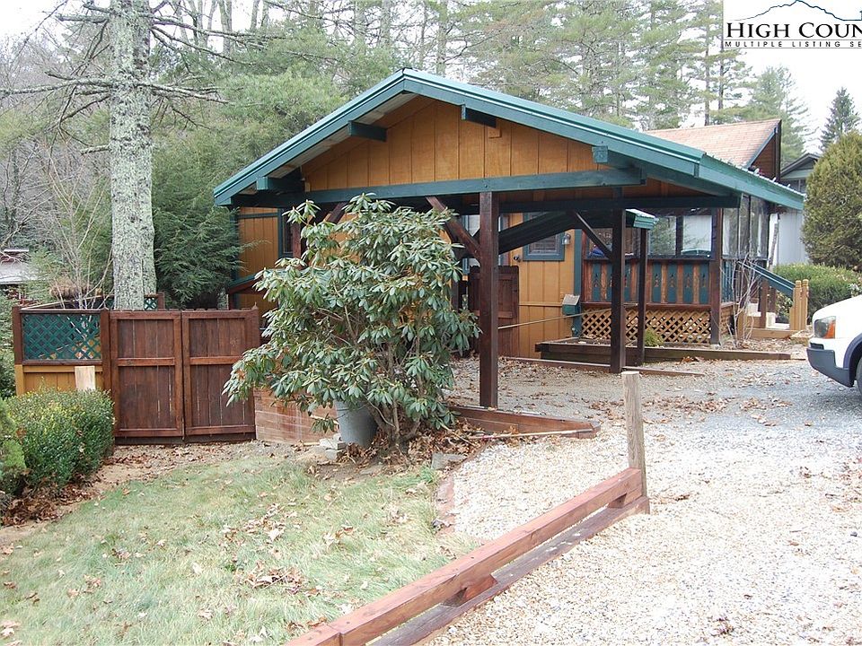 Sit on your covered porch, or in your living room and view the 5th fairway. Enjoy the large private deck, off the eat-in kitchen. The home has a very good flow, with very little wasted space. Easy parking with a beautiful new carport that current owner uses for a picnic shelter for large gatherings. Great little courtyard has a covered hot tub and a sitting area with a fire pit. Spacious living room with gas log fireplace. Kitchen/dining combo with a special wood counter and storage area. Master bedroom with master bath. has a second bedroom with another full bath in hall. Rinnai, L.P. gas heating system. Basement area for storage and workshop. Professionally landscaped. Well furnished. Enjoy amenities, such as golf, tennis, pickleball and shuffleboard.