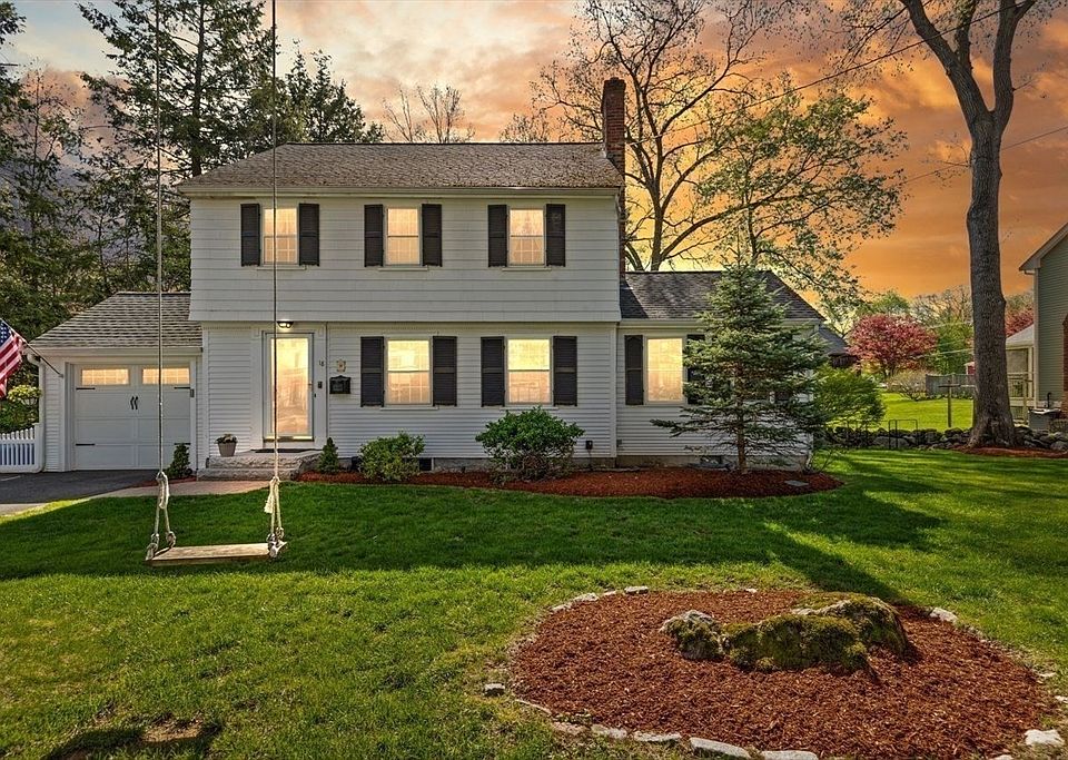 CURB APPEAL ALERT! CHARMING COLONIAL in quintessential Lynnfield neighborhood offers hardwood flooring throughout, Central Air, fireplaced living room, sweet dining room with built in china closet ,french doors and a gorgeous family room addition with white shiplap, vaulted ceiling and plenty of natural light. Sliding doors lead to the gracious patio and yard perfect for entertaining. All 3 bedrooms, a full bath with tub & shower located on the 2nd floor. Third bedroom gives easy access to the walk up attic offering plenty of storage or a NEW SPACE waiting to be created as home office or primary suite. Lower level has finished office/playroom with built-ins and a 2nd fireplace. White kitchen cabinetry with smart black hardware, black leathered countertops, GE appliances, and a built in workspace perfect for homework.Front and back irrigation,1 car garage, new 3BR SEPTIC installed in 2024. Did I mention the TREE SWING in the front yard? Offer deadline Tues May6 @11a
