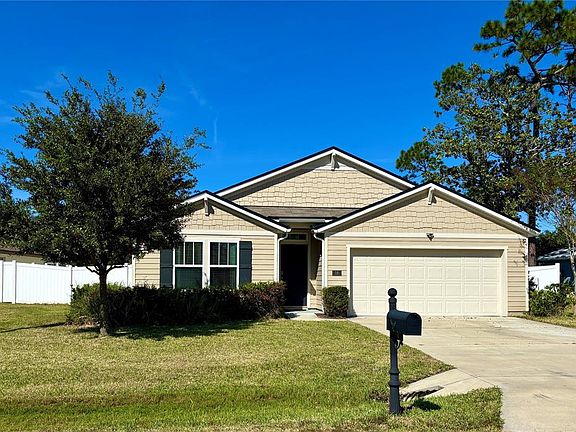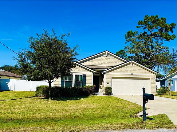 Welcome to this charming 4-bedroom, 2-bathroom home, nestled in the heart of Palm Coast. Step inside to discover an open floor plan, complemented by durable Luxury vinyl plank flooring throughout the main spaces. The modern kitchen is thoughtfully designed with stainless steel appliances, and a seamless flow into the living area—perfect for both entertaining and everyday living. Enjoy the privacy of a split-bedroom layout featuring a spacious primary suite with a walk-in closet and an en-suite bathroom. On the opposite side of the home, you’ll find three comfortable guest bedrooms and a full bathroom with a tub/shower combo. Glass sliders from the living area lead to a generously sized backyard—ideal for outdoor relaxation, play, or future pool. Additional highlights include, convenient laundry room and a 2-car garage. This house is Solar powered for very low electric bills! Located between Daytona Beach and St. Augustine, Palm Coast offers high-quality living at an exceptional value. This home is close to top-rated schools, shopping centers, churches, and major roadways including I-95 and US-1. The Palm Coast Town Center is just minutes away, offering a variety of dining, retail, and entertainment options, with beautiful beaches only a short drive away. Don’t miss the opportunity to make this home your own!