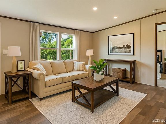 Just minutes from Osage Beach, this brand-new 4 bed, 2 bath manufactured home offers 1,475 sq ft of modern comfort on 1.34 private acres. Enjoy the perfect mix of privacy and convenience while saving on utilities with Energy Star-rated appliances, a hybrid water heater, and a smart Wi-Fi thermostat with Energy Star heat pump. Permanently affixed and qualifying for a 30-year fixed-rate mortgage, this home also comes backed by a 2-10 warranty—1 year on workmanship and materials, 2 years on systems, and 10 years of structural protection. A fresh start, ready for you to move in and make your own!