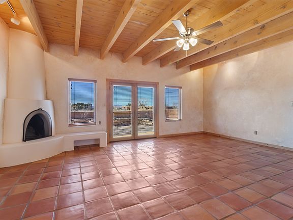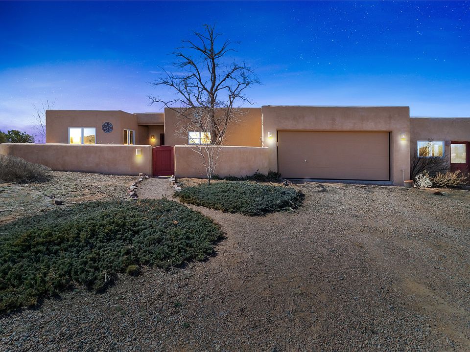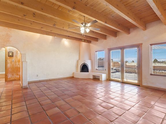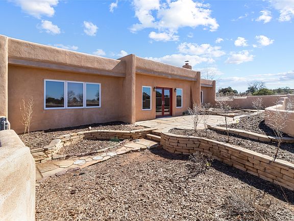 Located in Eldorado, this three bedroom, two bathroom Pueblo style casa is ready for you. With Saltillo floors, a kiva fireplace and beams, look no further! Nestled near the trails, school, shops and restaurants in Eldorado, welcome to the Eldorado lifestyle! Step from the front courtyard into the entry where the large living/dining/kitchen area are open to each other. There is separation between the primary suite and the guest bedrooms and bath. Adjacent to the two car garage is a studio with electricity, heat and plumbing available. There is a backyard courtyard with flagstone where you can enjoy the sunsets. Do not miss this opportunity and schedule your showing today. Imagine the Possibilities.