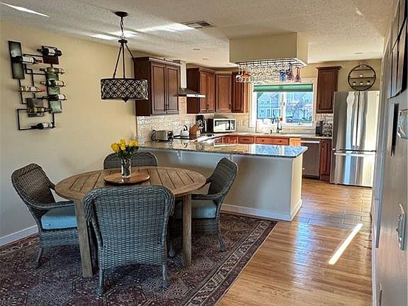 Wood-burning fireplaceDedicated laundry roomFresh paintRefinished hardwoodsCathedral ceilingsBright kitchenGranite countertops