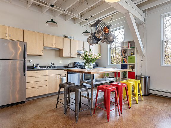 Located in Saco Maine minutes from the highway, shops, local attractions, and parks is 18 Park St unit 202. This beautiful one bedroom one bath condo, boasts open-concept living with modern updates while maintaining the charm and historic detail of an older building! The unit has a first-floor storage unit, inside mail delivery, and an elevator. Additionally, you have access to a community room with room to store a bike, utilize gym equipment, host a gathering, or relax while playing a board game. The loft itself has beautiful stained concrete floors throughout, an open kitchen and living space, a full bath with laundry, massive walk-in closet, and a spacious bedroom! Come see for yourself you won't want to leave.
